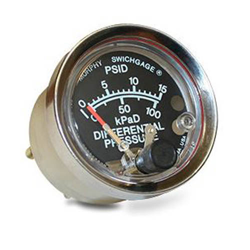 • Murphy A20DP-K-15 Differential Pressure Swichgage with Polycarbonate Case and Adjustable Knob