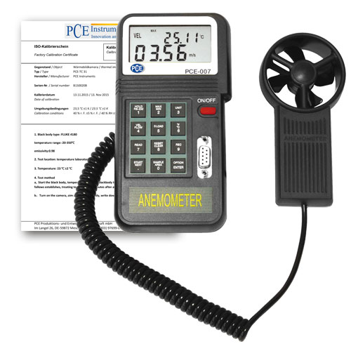 PCE 007-ICA AIR FLOW METER INCLUDED ISO CALIBRATION CERTIFICATE