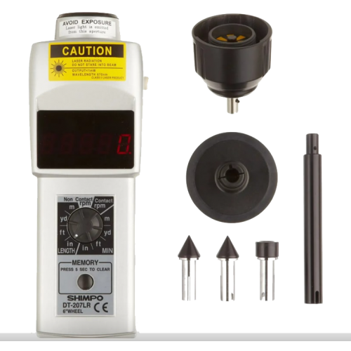 SHIMPO DT-207LR DIGITAL HANDHELD TACHOMETER, LED, 6in WHELL