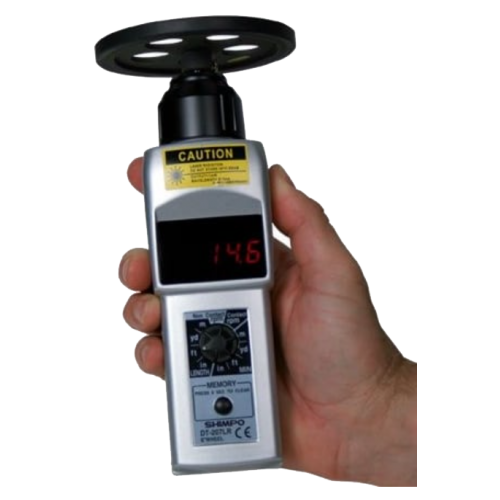 The laser-enabled DT-207LR has precise RPM measurements up to 20 feet. The Series DT-207LR digital tachometers incorporate laser technology yet retain our hallmark rugged construction and reliable quality components. Units offer incredible value and versatility as they can operate in non-contact and contact applications. These instruments feature a field-upgrade-able contact adapter for linear rate measure, conveniently allowing both non-contact and contact measurements. Incorporating the precise laser technology and user-friendly functions as the DT-207LR tachometer, the DT- 207LR-S12 provides exceptional accuracy in measuring speed and length via its 12” wheel. The larger wheel rotates more slowly than a standard 6” wheel, enabling reliable and safe registration of high speeds.